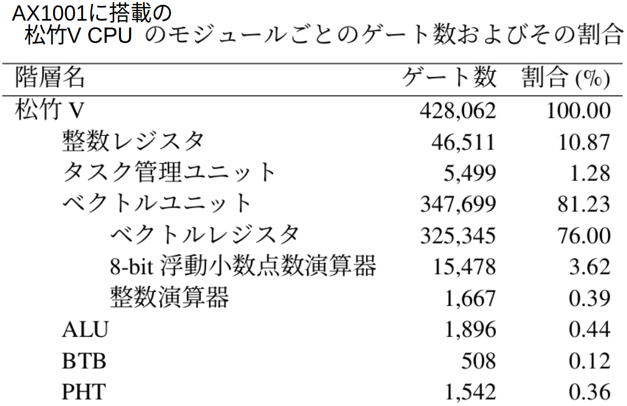 松竹V CPU(AX1001搭載)の使用ゲート数