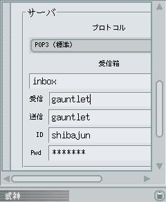 POP3/SMTPサー バ名を gauntlet、POP3サーバのユーザ ID を shibajun、